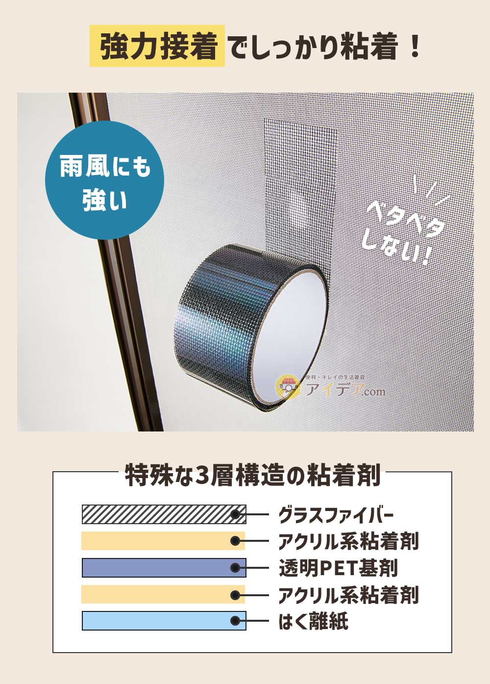 > 特殊三層黏著劑: COGIT 獨家研發的強力背膠,能牢牢抓緊原本的紗網。雖然黏性強大,但設計上貼心考量,操作時「不黏手」,讓您優雅完成修繕。