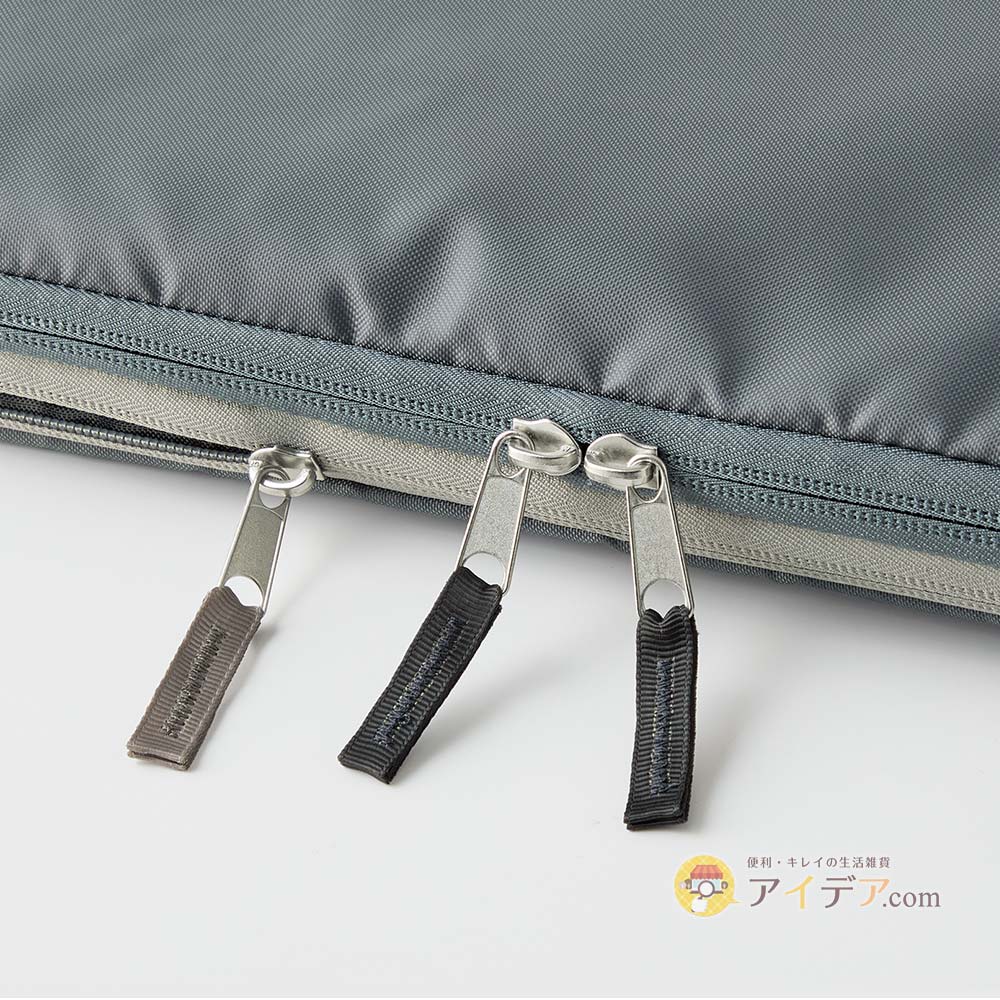 > 淺灰色:壓縮專用拉鍊。 看顏色就知道該拉哪裡,操作直覺又防呆。