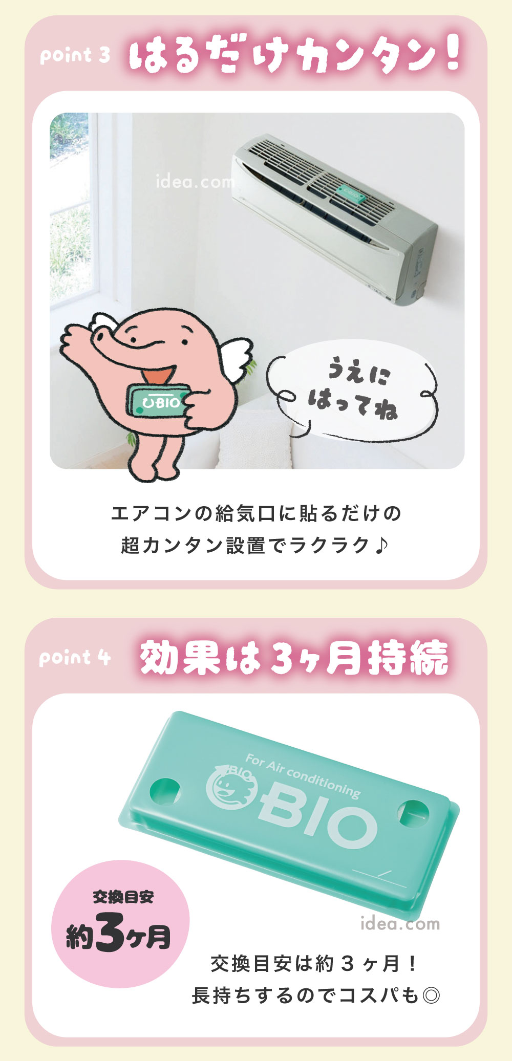 4. 效力長達 3 個月,省時又省錢 安裝一次,就能持續守護冷氣約 3 個月(足以涵蓋整個夏季)!平均下來每天只需銅板價,就能大幅延長冷氣需要請人深度拆洗的週期,省下高昂的清洗費,更守護了全家人的呼吸健康。