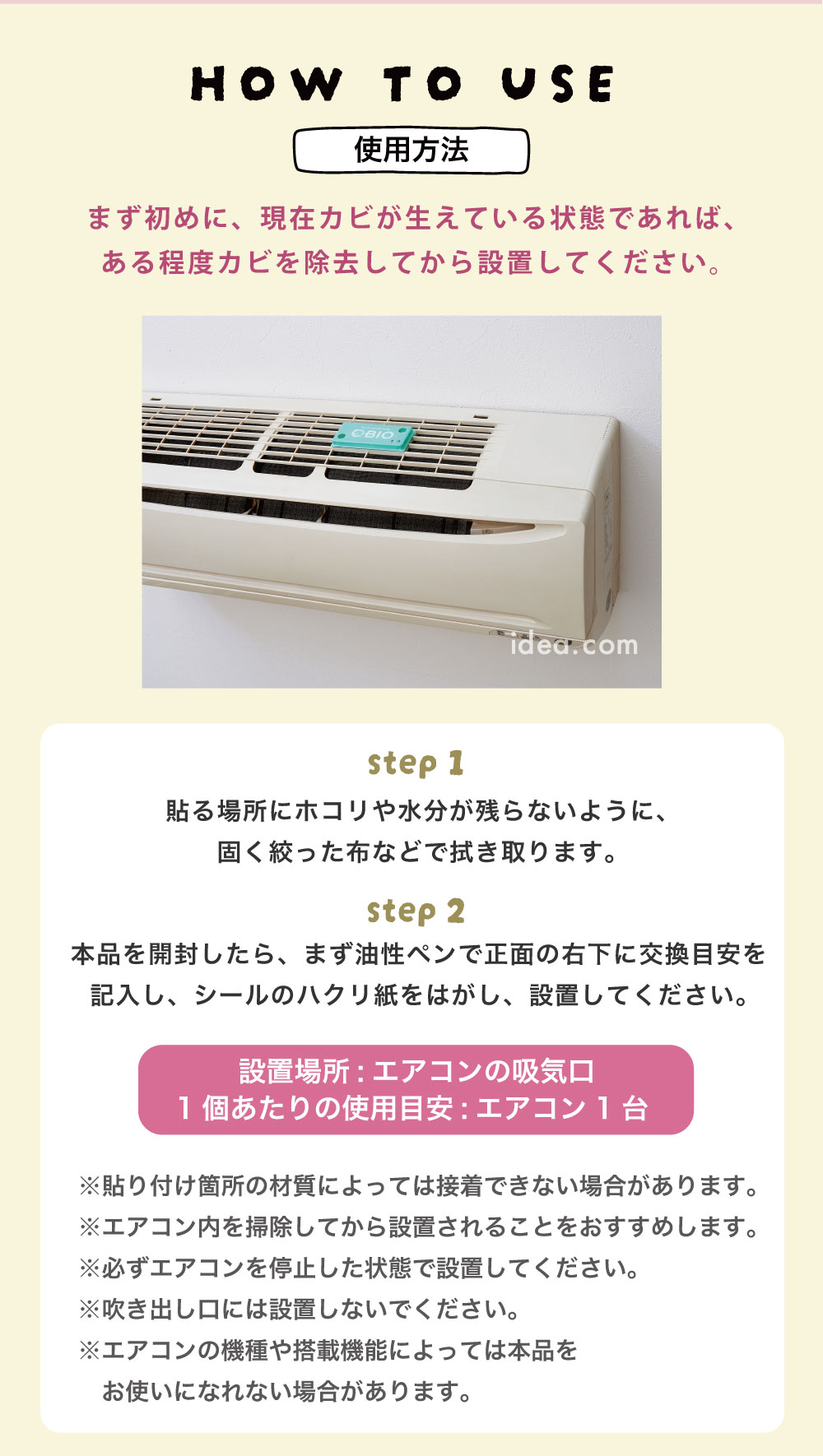 (※小提醒:使用期間請勿在冷氣周遭使用具殺菌效果的噴霧、強效化學清潔劑或燻煙式殺蟲劑,以免殺死好菌。)