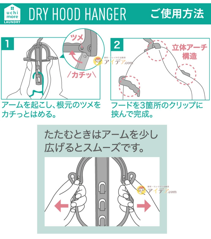 > 連帽外套、雨衣:撐開帽子加速乾燥。