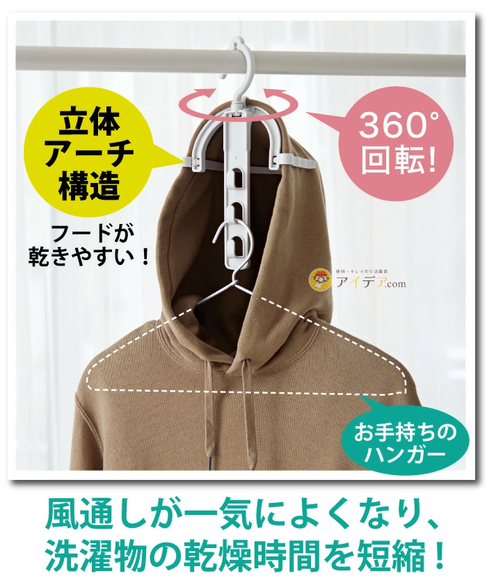 秋冬季節,穿上一件溫暖的厚帽T(連帽上衣)既舒適又時尚。但每當要清洗時,是否總是讓您感到崩潰? 明明身體部分都乾了,帽子和背部重疊的地方卻還是濕濕的?甚至因為長時間晾不乾而產生霉味? 為了晾一件帽T,佔用了兩三個衣架試圖把它撐開,卻還是效果不佳?