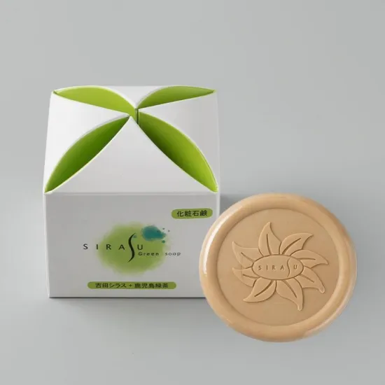 綠茶款式透過吉田火山灰與無農藥茶葉的相乘效果,徹底清潔肌膚並保持潔淨,能預防面皰(青春痘)及肌膚粗糙。能將每日因化妝、塗抹防曬乳所產生的肌膚髒污清爽洗淨。添加以美肌效果著稱的茶葉,這款火山灰皂綠茶款是特別推薦給女性使用的洗面皂。含有保濕成分,在容易乾燥的秋冬季節也能使用。